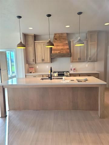 Stunning, Warm, Modern New Construction Ranch in desirable Greenville Subdivision! This functional, 3-4 brm, 2.5 bath home offers white oak doors, island and suspended back lite white oak beams in great room, dining and kitchen. Painted kitchen cabinets, maple cabinets in the baths and laundry room, champagne gold hardware, plumbing and lighting fixtures, open floor plan, natural stone fireplace with white oak mantle. The primary bath features double vanities and large tiled shower, covered front porch and covered back 18x11concrete patio. Large banks of windows throughout the home and white painted trim. There is a walk-in pantry with a butcher block countertop. Quartz and Granite countertops throughout the home. Tiled backsplash in the kitchen and niche.